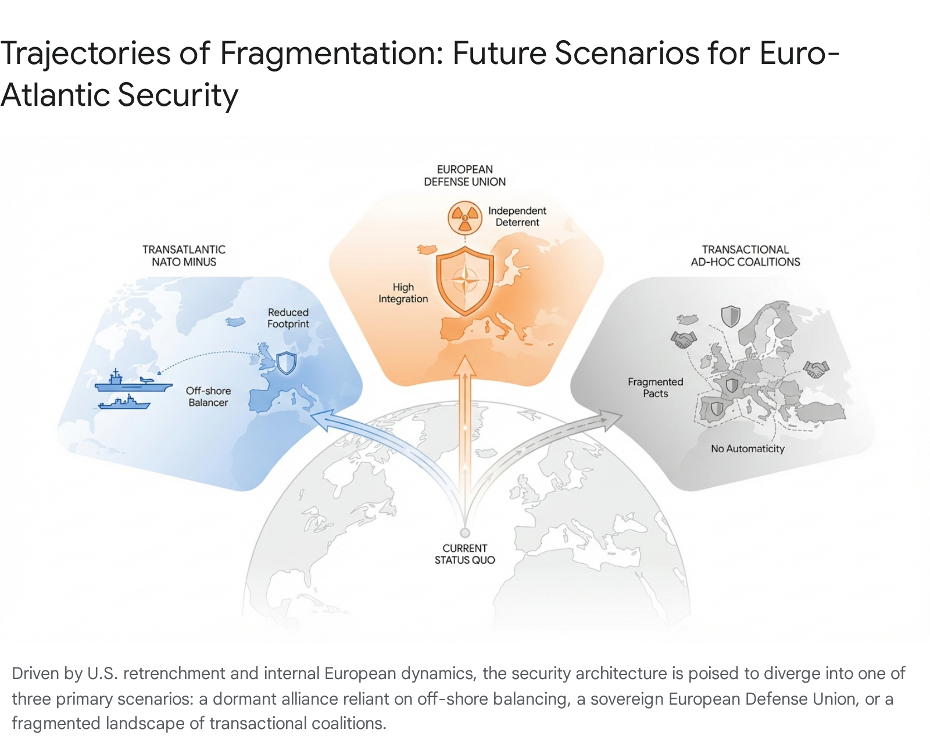 Should Trump proceed with a decision to withdraw from NATO, the Euro-Atlantic security architecture would likely evolve along divergent trajectories, shaped by shifting geopolitical dynamics, ideological divergences, and entrenched diplomatic frictions.